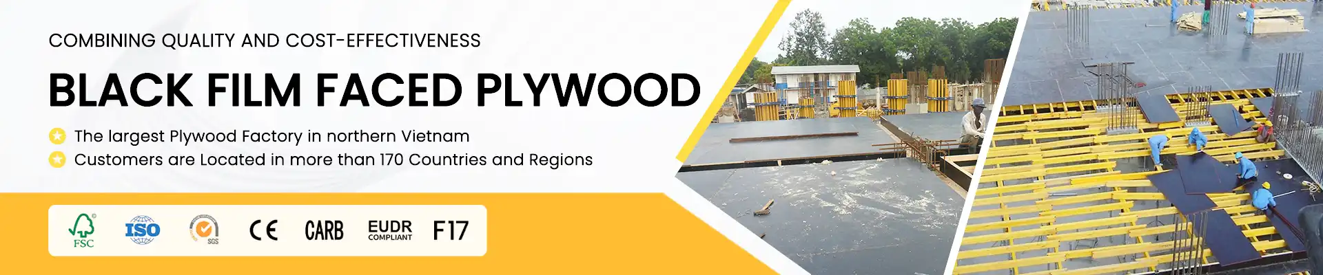 Black Film Faced Plywood is a professional-grade construction plywood designed for concrete formwork and shuttering applications. Manufactured in Vietnam for export to Europe, this plywood is coated with a high-density black phenolic film on both sides, offering excellent resistance to moisture, abrasion, and alkaline concrete exposure.